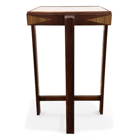 Late Art Deco Table - Inlayed Wood and Blue Mirror - 1940s