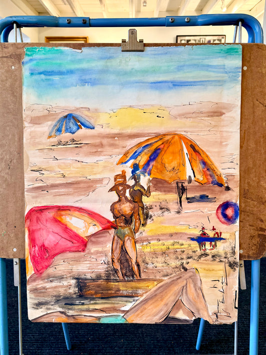 Beach Scene - Watercolor on Paper by Melvina Calvert (1908-1982) - Unframed